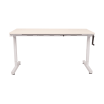 Crafted with a sleek white powder coat frame, this desk has a natural white worktop finish. The Robust Manual Winder Height Adjustable Desk blends aesthetics and practicality seamlessly. It accommodates various workspace sizes, ensuring a perfect fit within your office while enhancing the overall work experience.