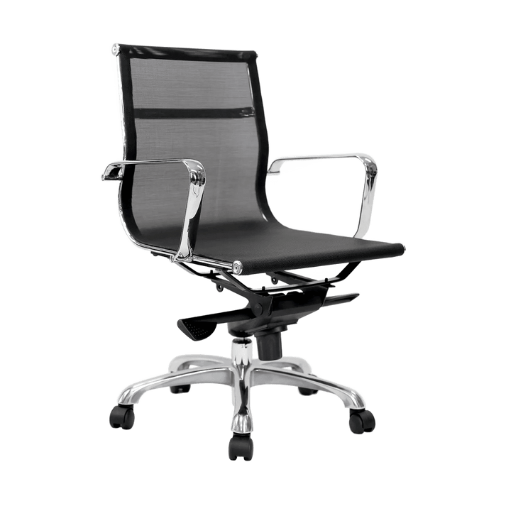 With breathable black mesh upholstery, the chair ensures optimal airflow. It also enhances the aesthetic appeal of any office. Durable aluminium or chrome base options provide stability and sophistication.