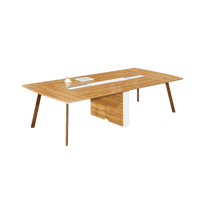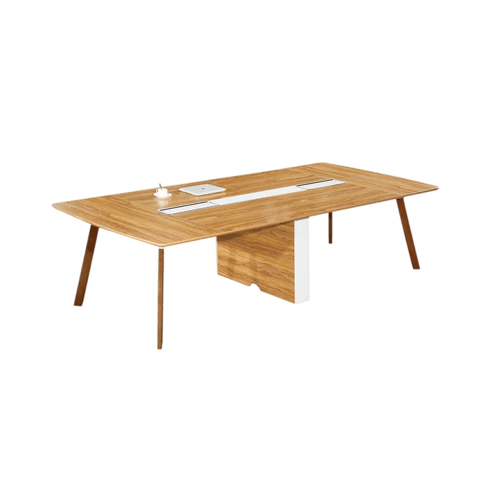 A large fixed-height boardroom table finished in American Walnut, with two integrated power boxes providing GPO, USB, and data ports to support AV and connectivity in director-level meeting environments.