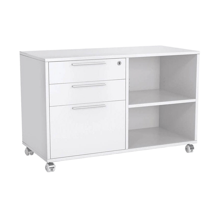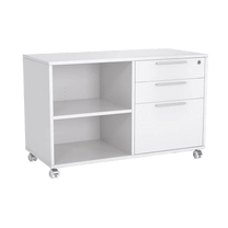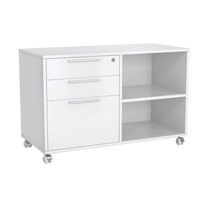 This caddy pedestal has height-adjustable shelves, allowing for tailored storage solutions. It helps keep your workspace organised and efficient.