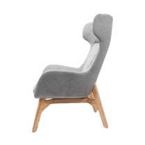 Upholstered in tasteful light grey fabric, the Calypso Wing Back Chair offers a contemporary touch. This inviting and stylish design complements various settings. It provides a comfortable seating option for your guests, ensuring they feel welcome.