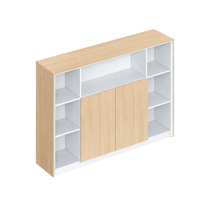Integrated storage options include a double swing door cupboard alongside multiple storage cubes and a large central opening. The enclosed section features an adjustable shelf to provide flexible housing for varying sizes of equipment or documentation. This variety of compartment types allows for both the display of items and the discreet storage of sensitive materials. The unit is engineered to support dynamic office layouts while providing stable and reliable performance. Each component is manufactured to meet rigorous commercial standards for long-term use in high-traffic areas.