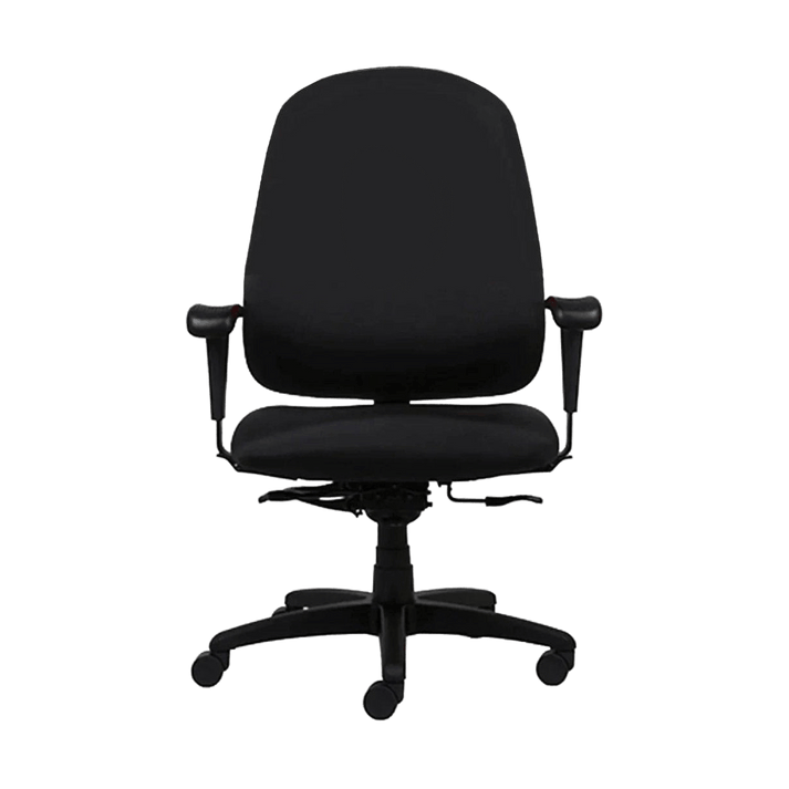 This robust task chair features a high back design that promotes proper posture. It enhances user comfort during extended periods of use.