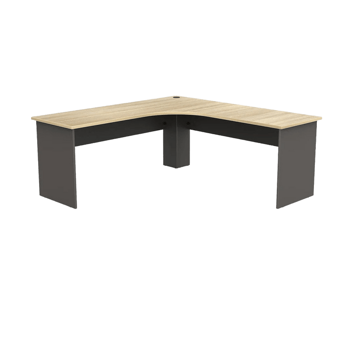 Its L-shaped design utilises space efficiently. This makes it ideal for those who appreciate practicality and visual appeal in their workspace.