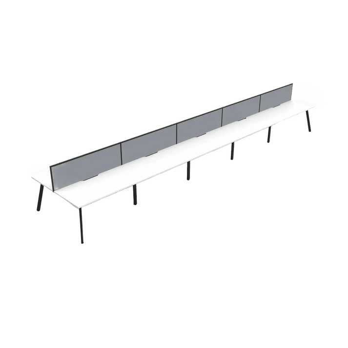 The Eternity 10 Person Double Sided Workstations with Screen enhance productivity and foster collaboration in modern offices. These workstations are backed by a 5-year warranty, ensuring their durability and long-lasting performance.