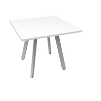 The Eternity Small Meeting Table is perfect for efficient collaboration in compact spaces. It features a unique 45° profile leg frame. Available in timeless black or white finishes, it pairs beautifully with round and square E0 melamine table tops. This design enhances your office's aesthetic and integrates seamlessly with other pieces in the Eternity range. Plus, it is backed by a 5-year warranty for added peace of mind.