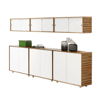 This versatile assortment features three top cabinets with sliding glass doors, three bottom cabinets with hinged doors, and three wall panels. It provides ample space to keep your office organised and clutter-free.