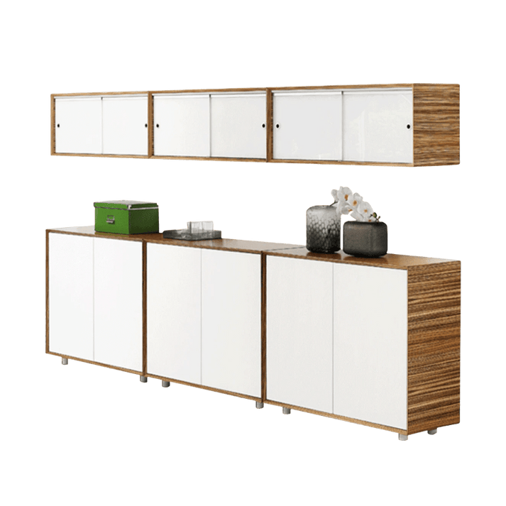 With striking natural Zebrano timber veneer and elegant white 2pac finishes, this cabinet cluster enhances your office aesthetic. It also serves as a highly functional storage solution.