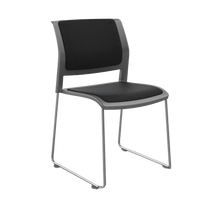 Its sleek charcoal polypropylene shell enhances aesthetic appeal. It also ensures durability and ease of maintenance in high-traffic areas. The upholstered seat and backrest provide added comfort. With a stackable design, it is a versatile choice for flexible seating arrangements.