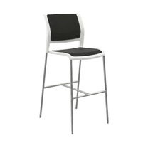 The stool features a supportive upholstered seat and backrest designed for short to medium duration seating. Its four leg base provides stable positioning across hard flooring in shared environments. The elevated seating height supports informal meetings, learning spaces, and staff amenity areas. The design allows easy placement across varied layouts without visual clutter. It suits spaces where durability, comfort, and presentation are equally important.