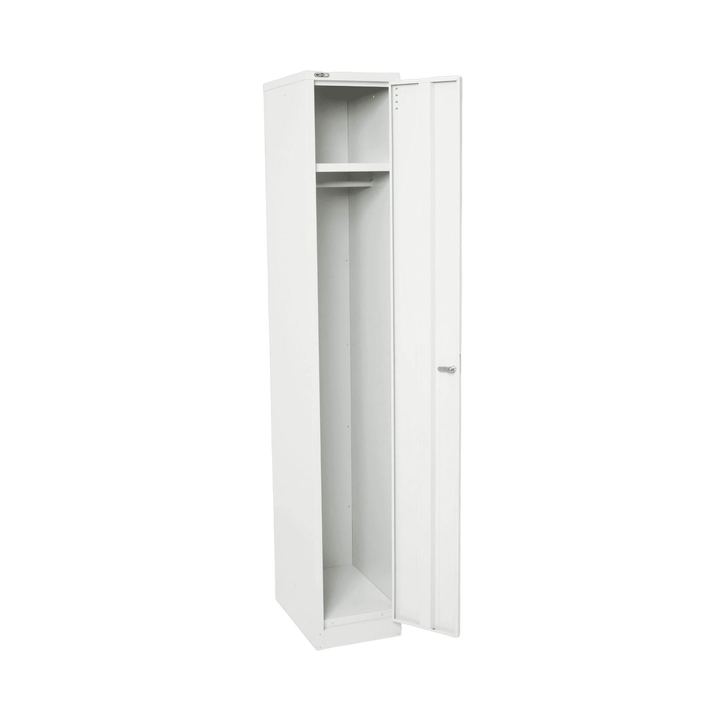 The Go Single Door Steel Locker in White is a practical addition to office environments and shared spaces. Crafted with robust steel construction, it features riveted joints for optimal security. This locker ensures strength for all your storage needs. It is also backed by a 10-year warranty, providing peace of mind for your investment.