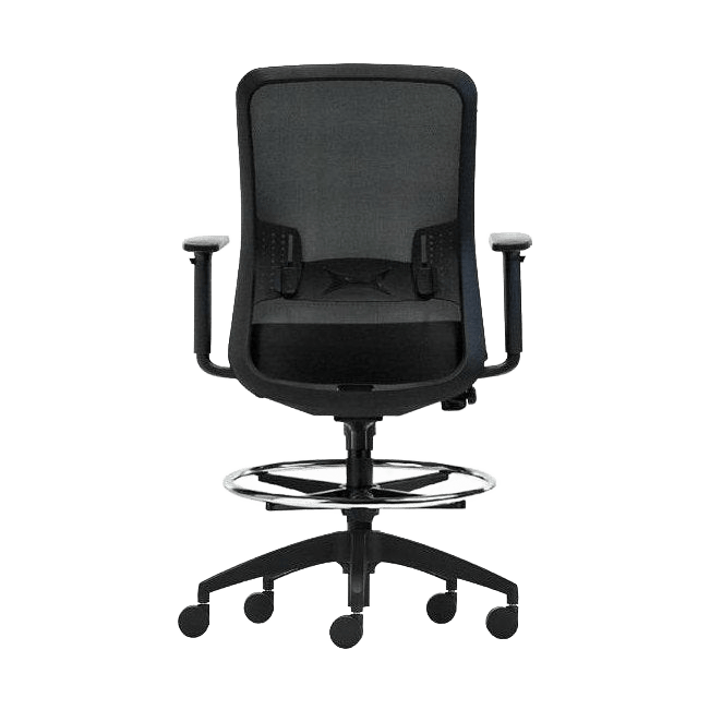 This chair includes ergonomic features such as adjustable lumbar support and a synchro tilt mechanism. These features encourage proper posture and enhance user comfort. The design also contributes to overall productivity, making the Graphite Ergonomic Drafting Chair a durable addition to any office setup.
