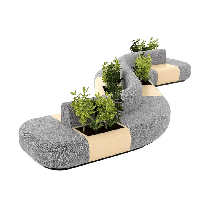 - Matching Plywood Modular Tables and Planters - Featuring built-in plywood planters and tables, adding functionality and natural accents to modern office spaces.