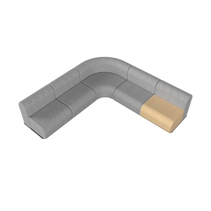 Soft curves and edges define the Grove Modular Sofa, creating a welcoming atmosphere. It also includes matching plywood tables and planters, ensuring an organised workspace infused with natural elegance.