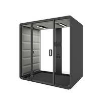 The Hush Free Meet Access Pod is an acoustic meeting pod designed for one to four people, including users with mobility impairments. It provides an accessible environment for focused work, meetings, and private conversations within open workplaces. A low threshold, wider door, and convenient handle support wheelchair entry and smooth movement inside the pod. The interior can be configured flexibly to support collaborative sessions or quiet individual work, and a predefined layout with a table and two sofas is also available.