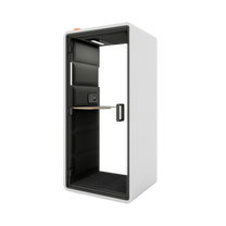 Inside the booth, a fixed desk and balanced lighting create a practical workstation for digital communication. Additional side lighting improves face visibility during online meetings, interviews, and quick video check ins. The compact footprint suits offices with limited floor area or frequently changing layouts and team zones. Wheels integrated into the base support movement during reconfiguration, while levelling feet ensure a stable position. Multiple interior colour combinations are available so the pod can coordinate with broader interior design schemes. With thoughtful detailing and flexible specification options, the booth integrates smoothly into long term workplace planning.