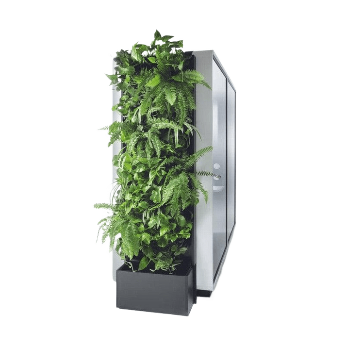 Built with a user-friendly electronic irrigation system, the Hush Office Green Wall maintains the vitality of your plants with minimal effort. This system keeps your greenery healthy, allowing you to focus on your work without worrying about plant care. The carefully constructed anthracite metal frame and legs provide style and durability. This makes the product a long-lasting addition to your office decor.