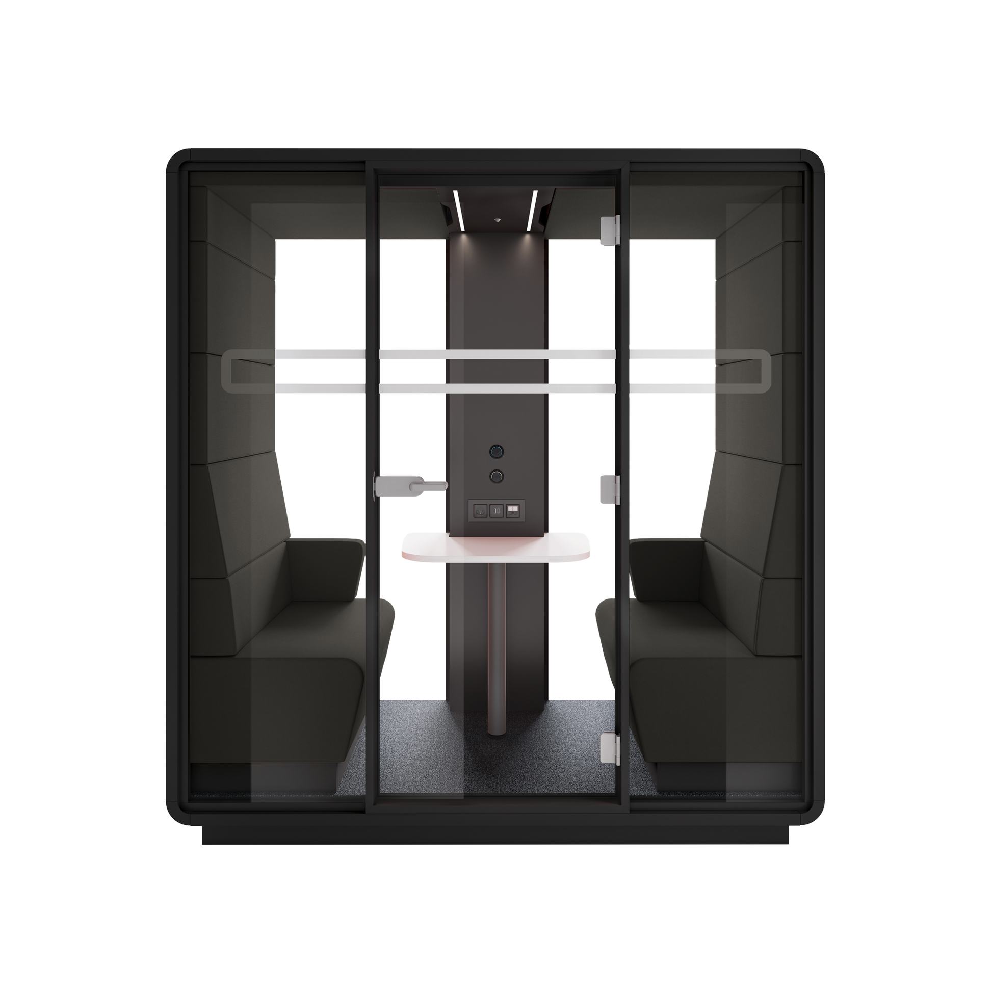 With toughened acoustic glass and an integrated ventilation system, the Hush Meet Pod provides a serene atmosphere. It does not compromise on functionality. Essential amenities include power modules and LED lighting, which optimise the space for work and creativity. This innovative design helps to organise your office layout while promoting a peaceful setting for team interactions.