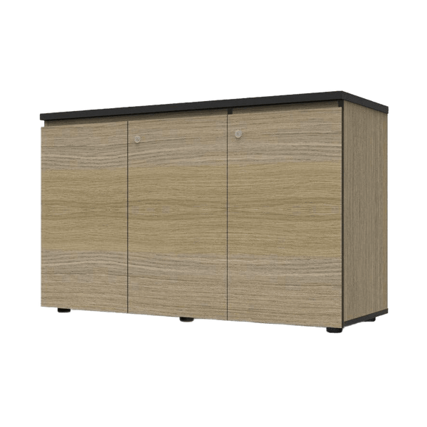 The Infinity Swing Door Cupboard comes in various widths and configurations. Its sleek construction features black rigid edging and shark nose door handles, enhancing your office's contemporary style.
