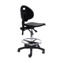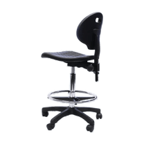 Features such as back height adjustment and various tilt locks tailor the Lab Drafting Stool to diverse ergonomic needs. Its sophisticated black polyurethane upholstery adds a sleek touch and ensures easy maintenance. This makes it a practical choice for any professional setting.