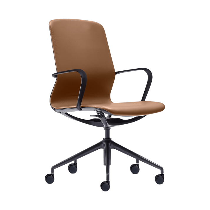 The Meta Executive Meeting Chair in Tan Leather is the perfect choice for executives. It blends elegance and comfort in any office environment. This chair is upholstered in premium genuine leather, showcasing a refined tan hue. It complements various office aesthetics while promoting a professional image. Plus, it is backed by a 5-year warranty, ensuring its long-lasting quality.