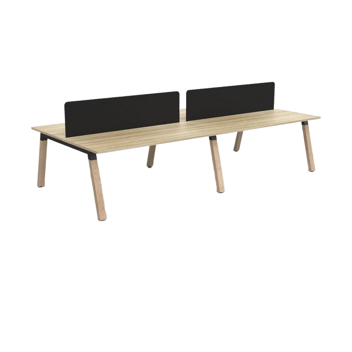 The Plantation 4 Person Double Sided Desk with Radius Screens is a stylish and practical addition to any modern office. Its solid oak legs and durable powder-coated frame provide both natural beauty and support for an efficient work environment. This desk caters to the needs of collaborative teams and enhances productivity. Plus, it is backed by a 10-year warranty to ensure lasting quality.