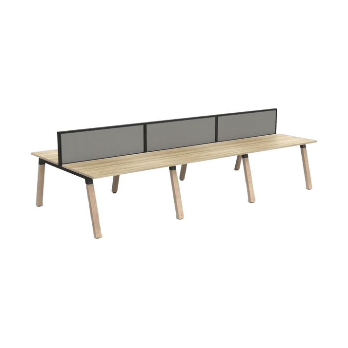 This double-sided desk has solid oak legs for stability and adjustable settings for user preferences. Studio 50 Screens optimise the workspace while ensuring privacy during team interactions. Available in multiple colours and sizes, this versatile desk meets the dynamic needs of contemporary offices.