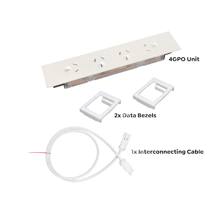 Featuring a quad GPO, the kit allows multiple devices to connect simultaneously. This eliminates the hassle of searching for power sockets. Additionally, two data bezels help keep your workspace organised and manage data connections seamlessly.