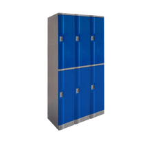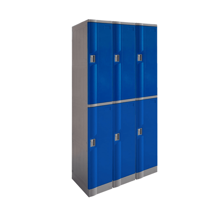 The Steelco 2 Door ABS Plastic Locker Triple Bank is ideal for high-traffic environments like gyms, schools, and workplaces. It is backed by a 5-year warranty, ensuring longevity and reliable performance for secure storage.