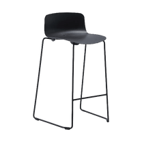 This stool features a stackable design that allows for up to six high. It provides versatile seating options for flexible arrangements.